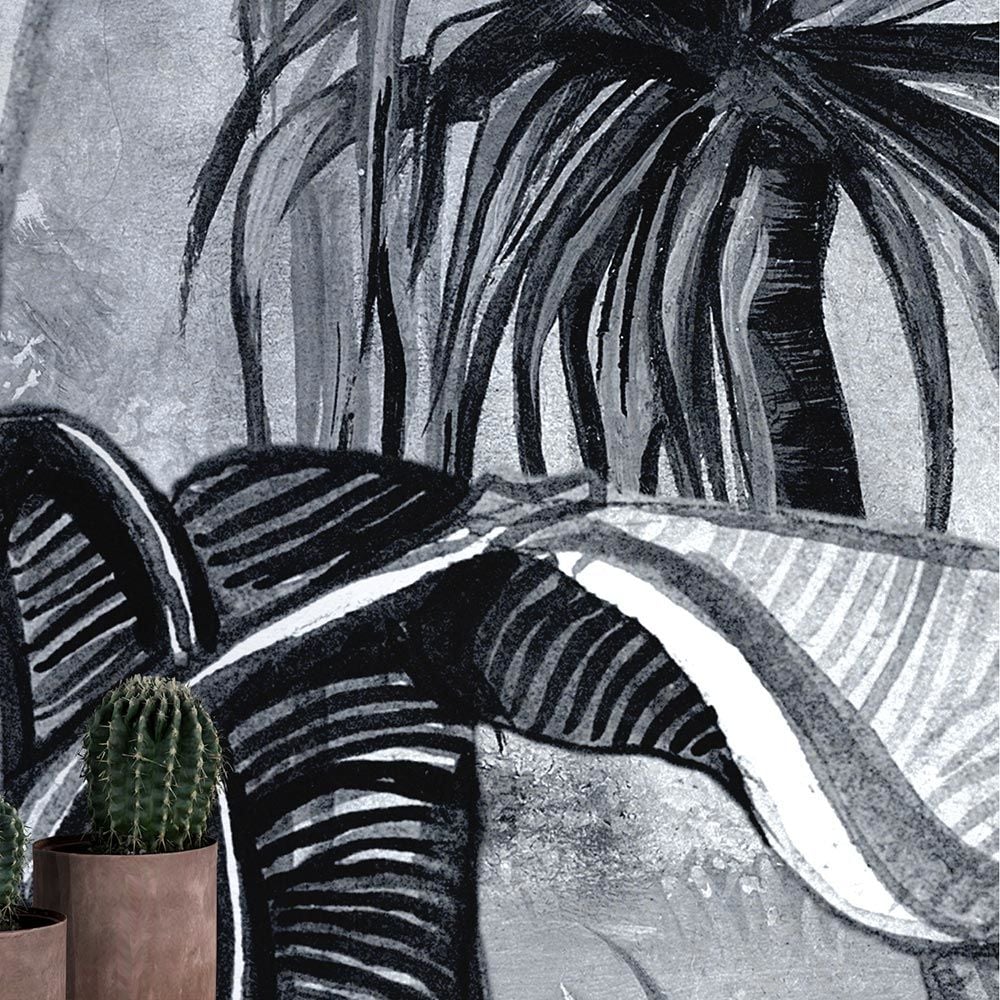 Siyah Beyaz Çizim Tropik Ağaçlar Duvar Kağıdı