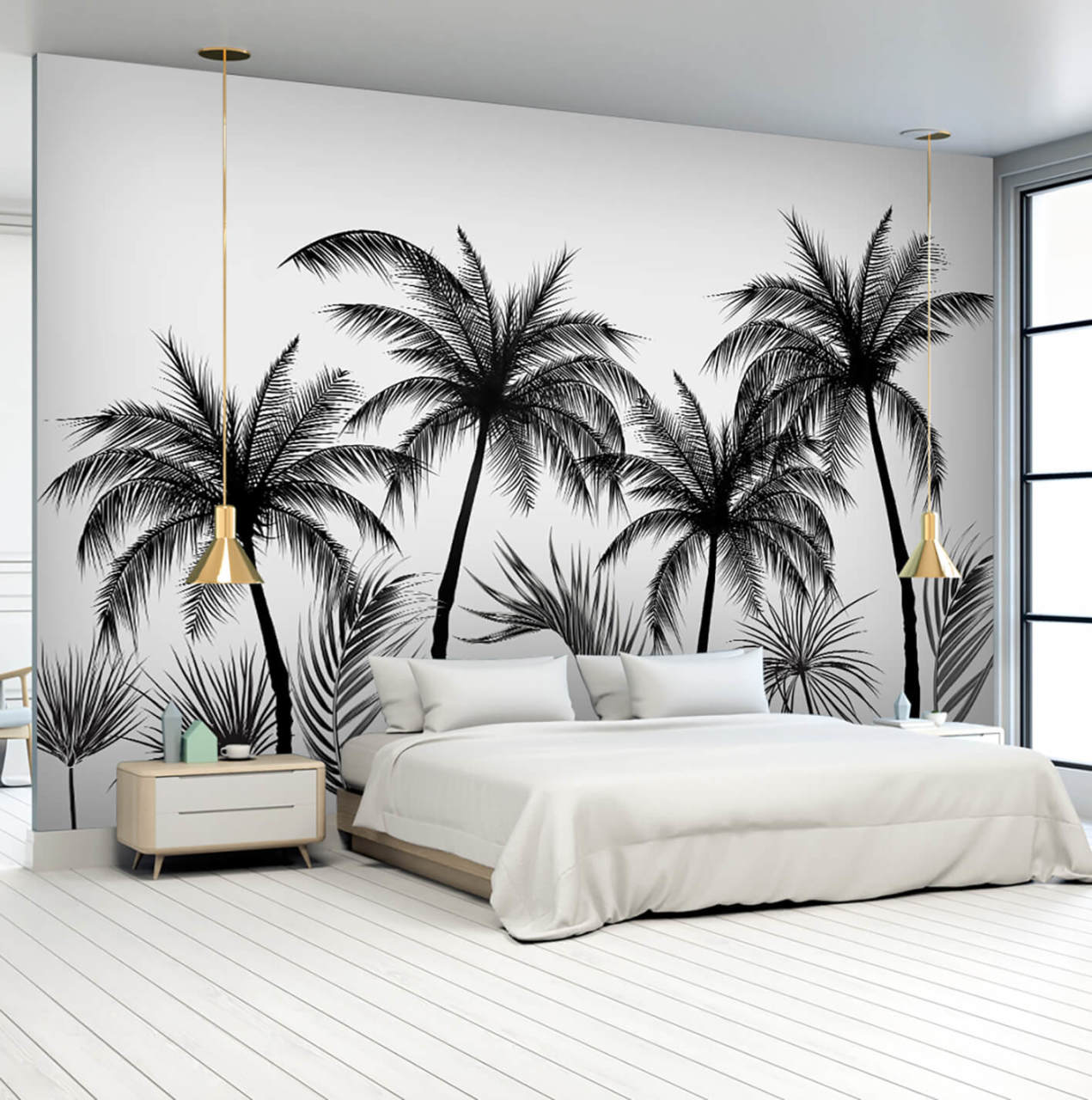 Siyah Çizim Palmiye Ağaçları Duvar Kağıdı
