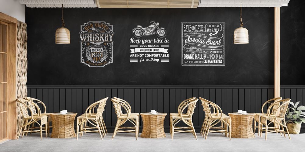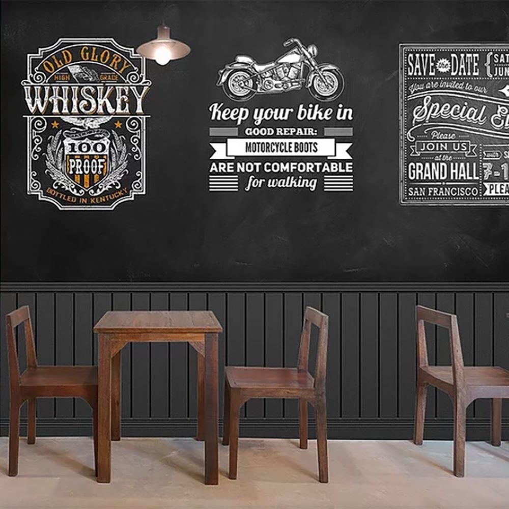 Karatahtada Sticker Çizimler Duvar Kağıdı