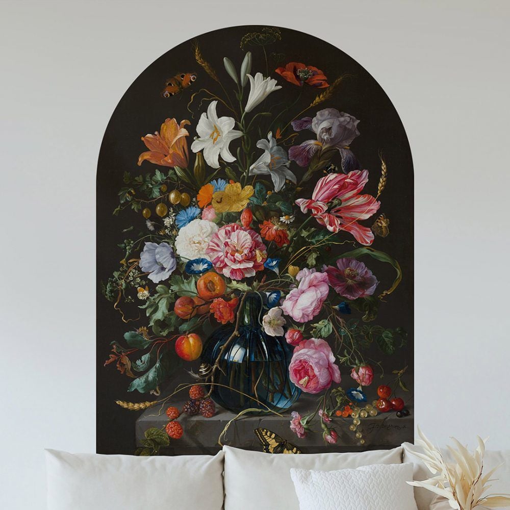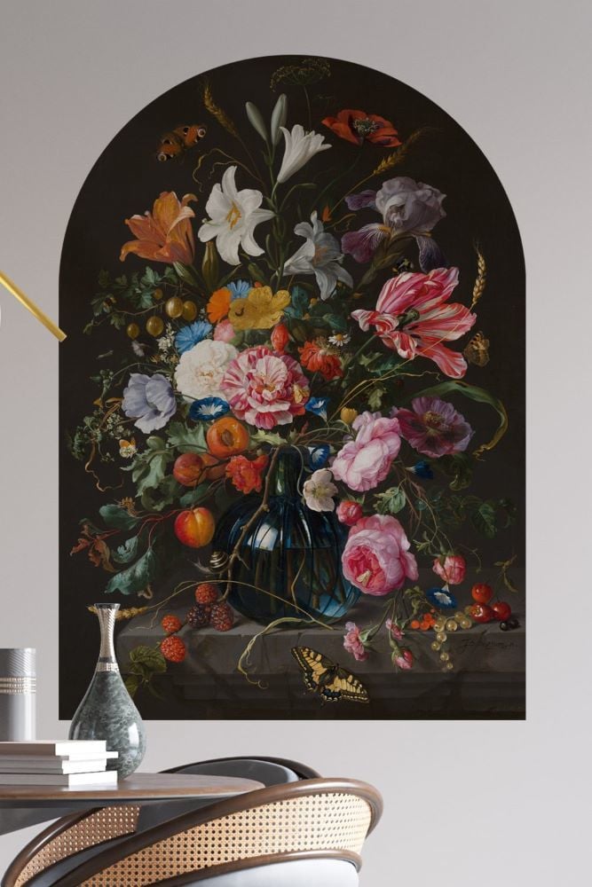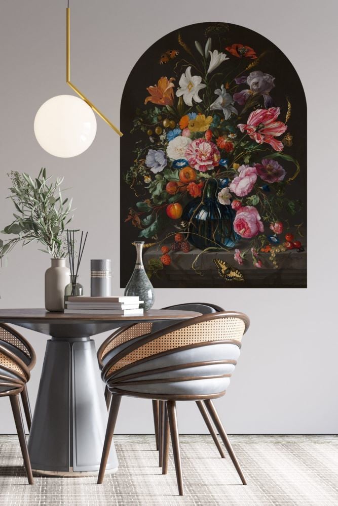 Siyah Fonlu Canlı Renkli Çiçek Desenli Duvar Kağıdı