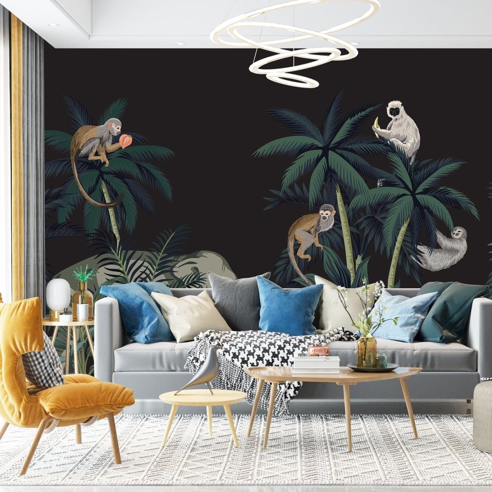 Siyah Zeminde Maymunlar Ve Bay Uyuşuk Duvar Kağıdı