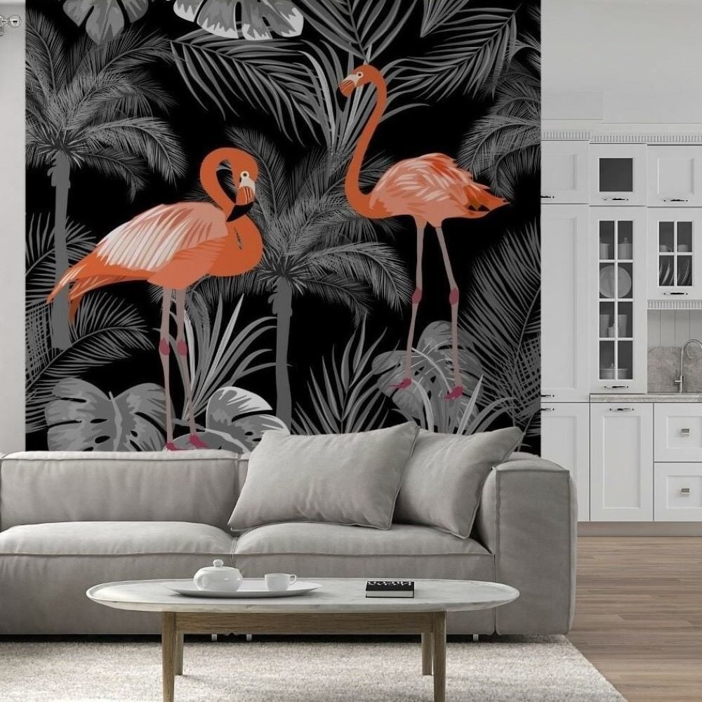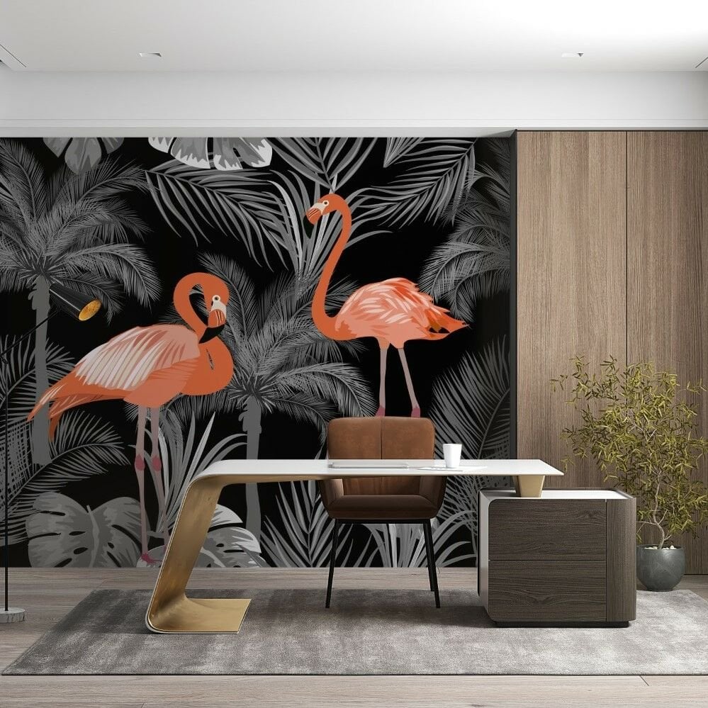 Siyah Zeminde Pelikanlar Tasarım Duvar Kağıdı