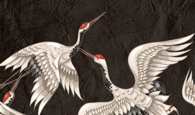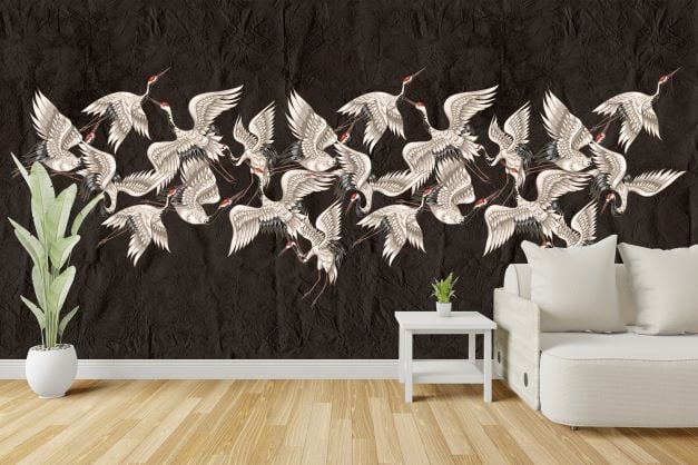 Siyah Zeminde Turna Kuşları Duvar Kağıdı