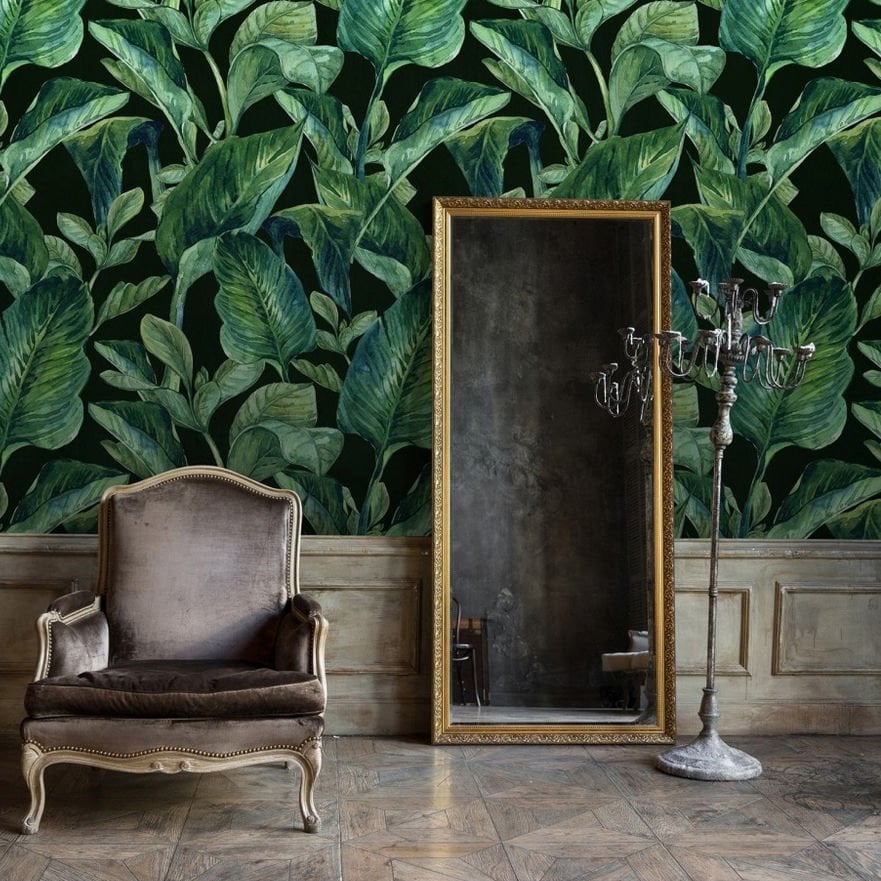 Siyah Zeminde Yoğun Yeşil Yapraklar Duvar Kağıdı
