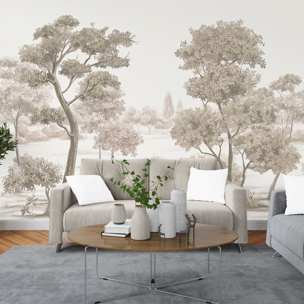 Soft Ağaçlar Sepya Renk Tasarım Duvar Kağıdı