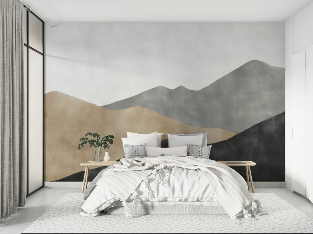 Soft Gri Kahve Antrasit Dağlar Duvar Kağıdı