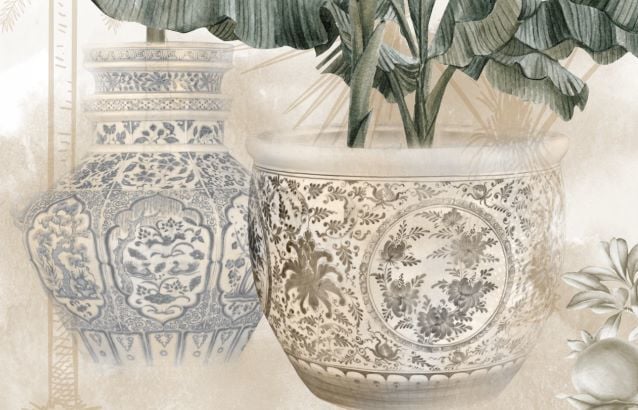 Soft Renkler Blue Blanc Saksılar Duvar Kağıdı