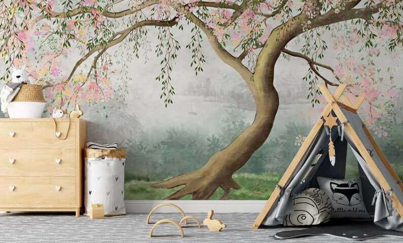 Söğüt Dalları İle Çiçekli Ağaç Duvar Kağıdı