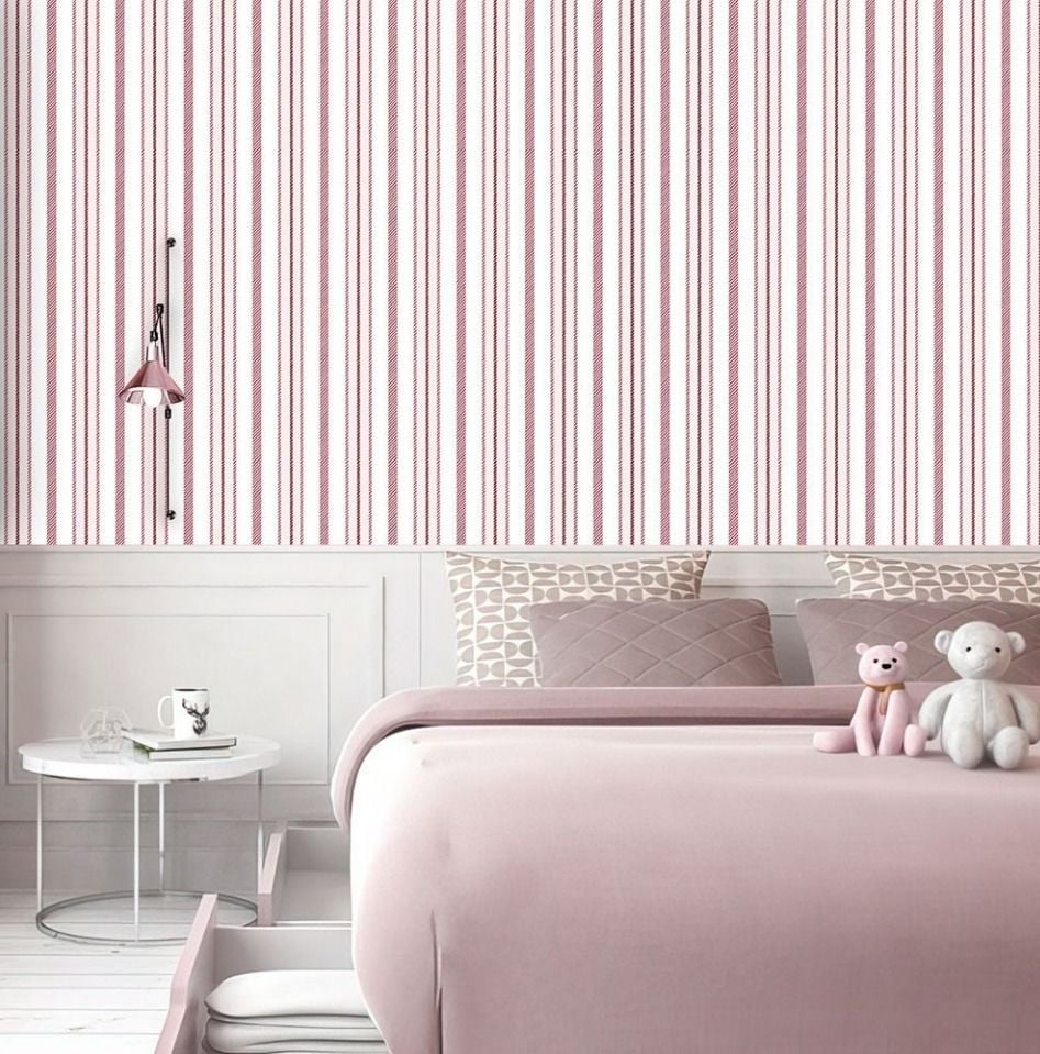 Stripe Vintage Çizgili Tendaart Pembe Duvar Kağıdı
