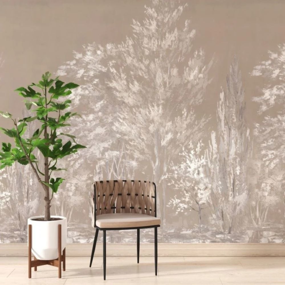 Suluboya Efektli Ağaçlar Sepya Tasarım Duvar Kağıdı