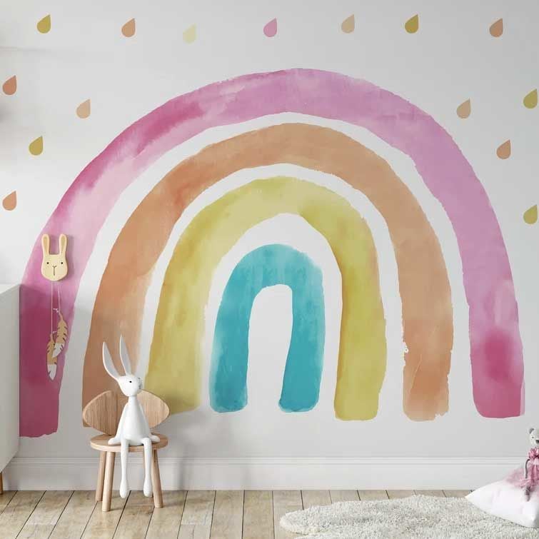 Uva Suluboya Efektli Gökkuşağı Yağmur Damlalar Duvar Kağıdı