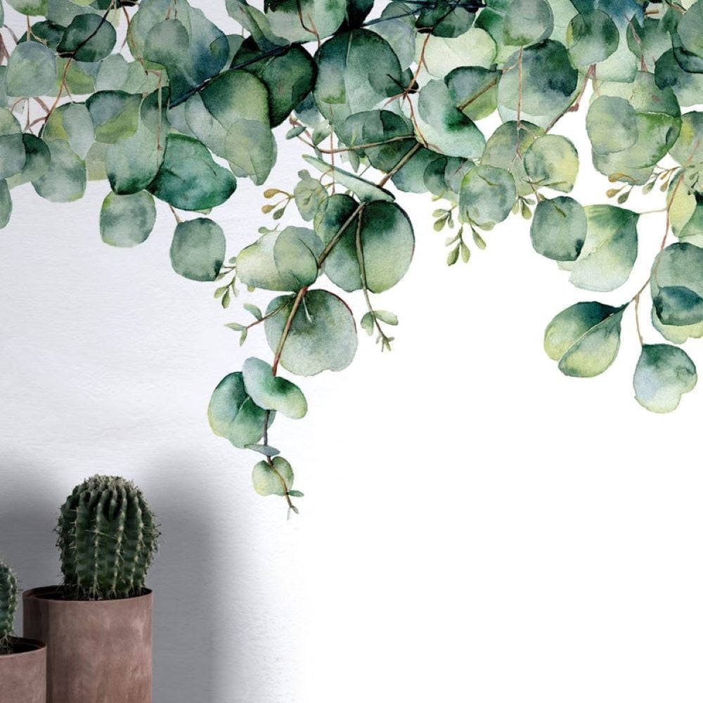 Uva Suluboya Efektli Okaliptüs Yaprakları Duvar Kağıdı