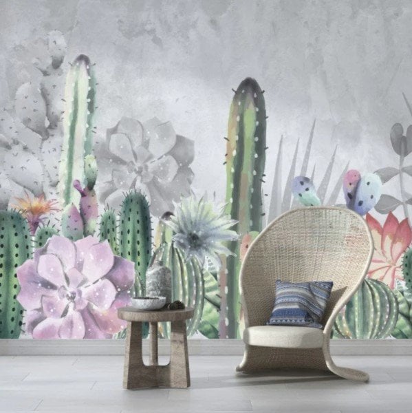 Suluboya Efektli Suklukent Kaktüsler Duvar Kağıdı