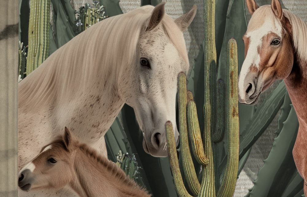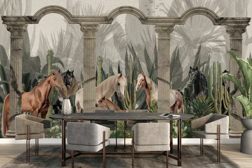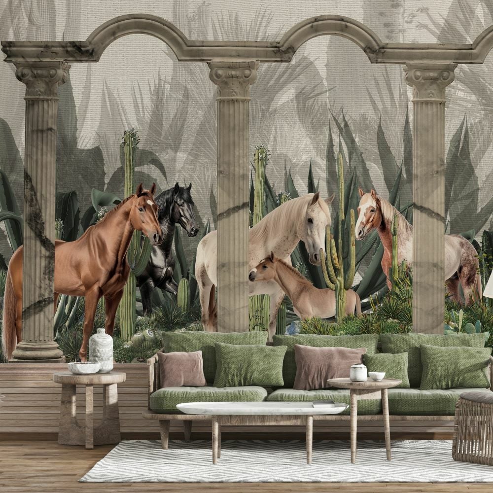 Sütunlar Arasında Yabani Atlar Tasarım Duvar Kağıdı