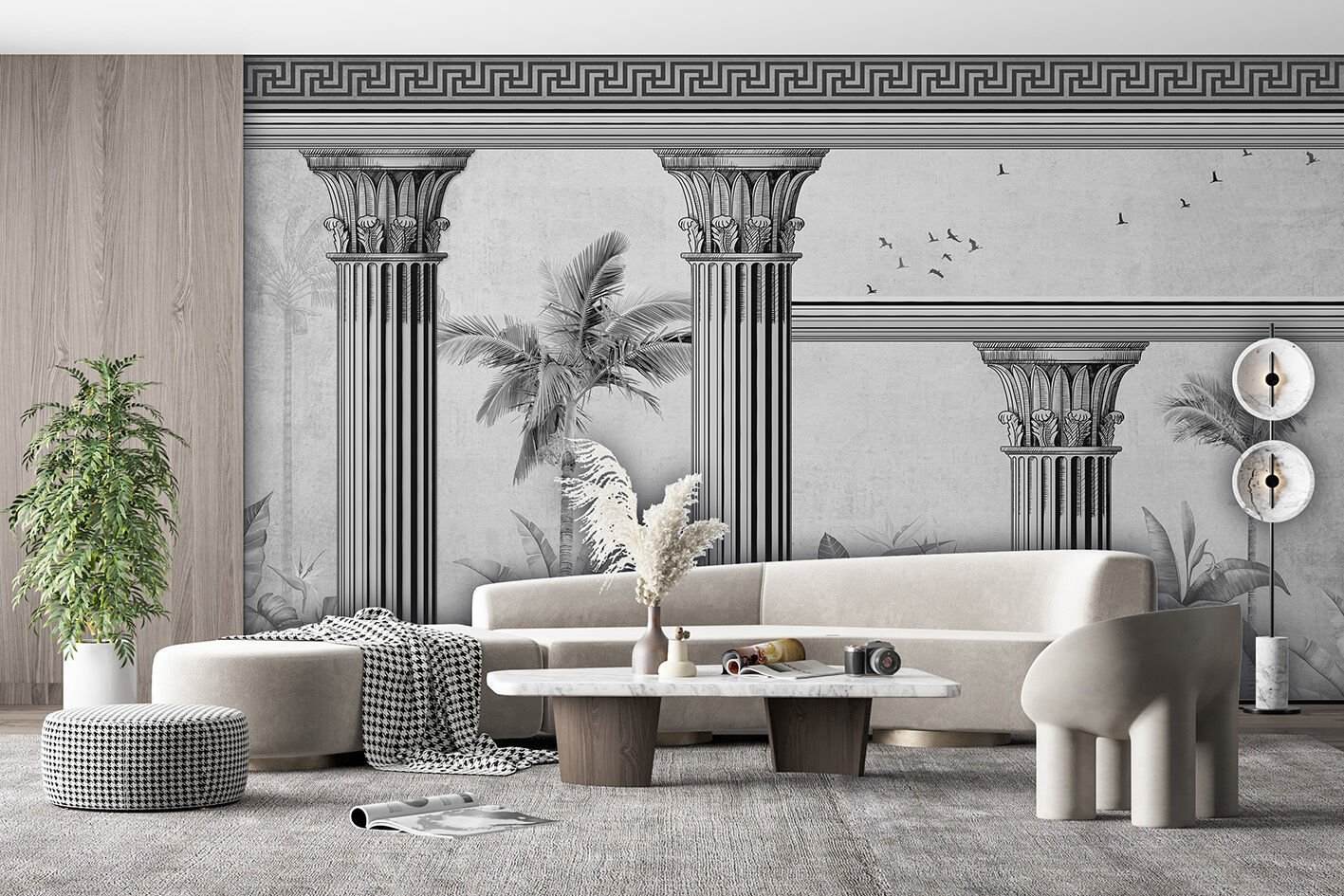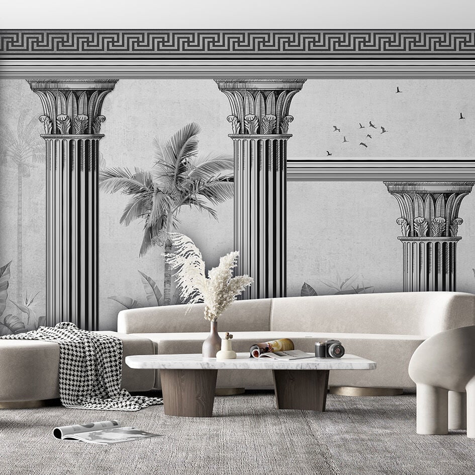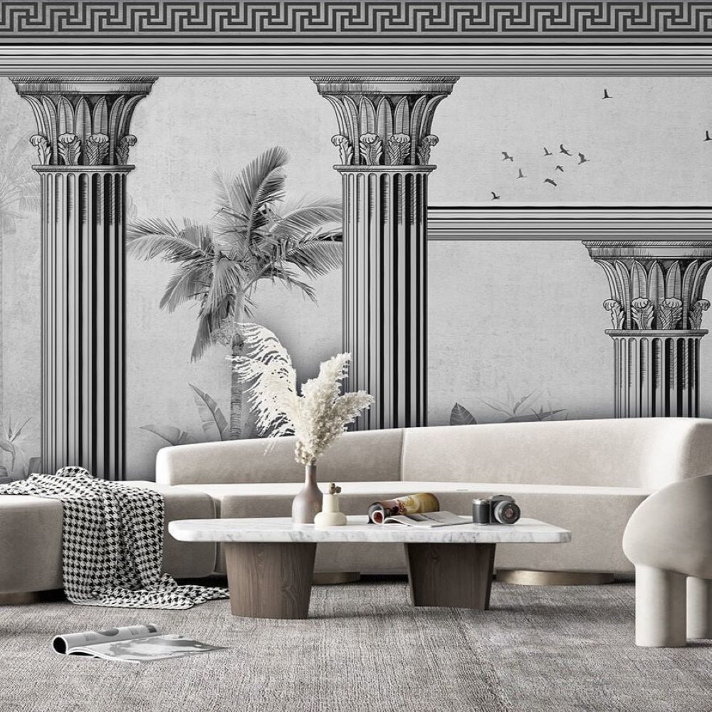 Sütunlar Kuşlar Ağaçlar Tasarım Duvar Kağıdı
