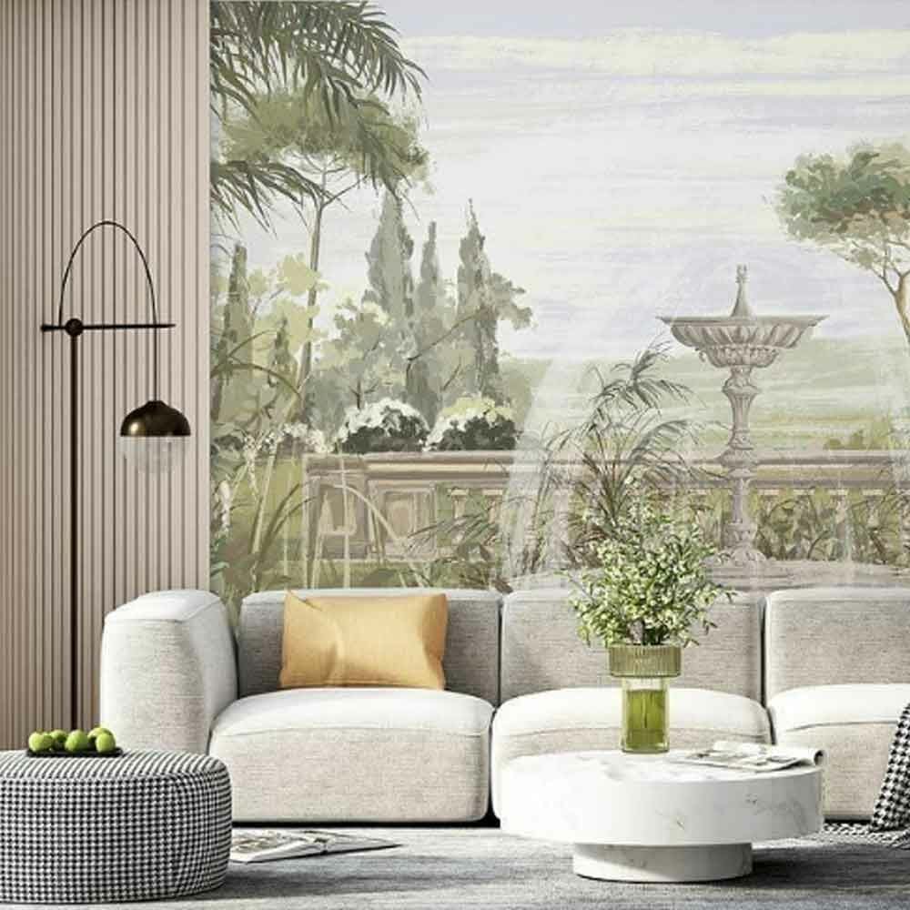Tarihi Su Akan Çeşme Ağaçlar Duvar Kağıdı