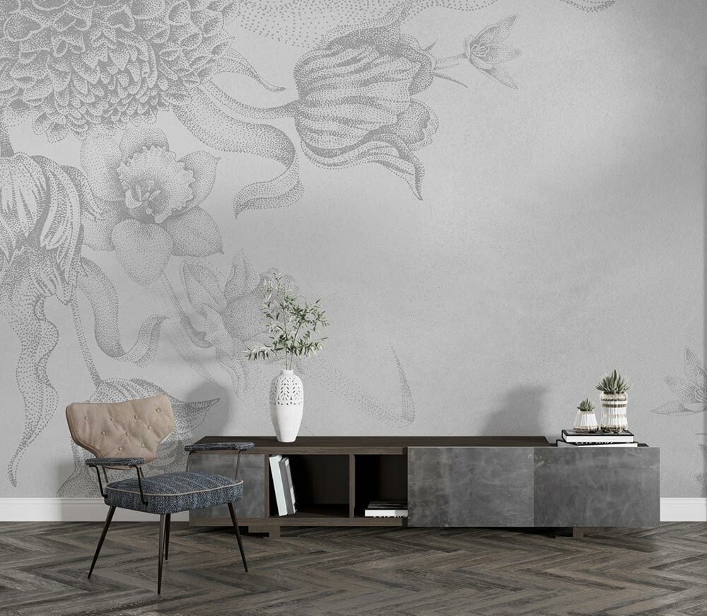 Tasarım Nokta Çalışması Gri Çiçekler Duvar Kağıdı