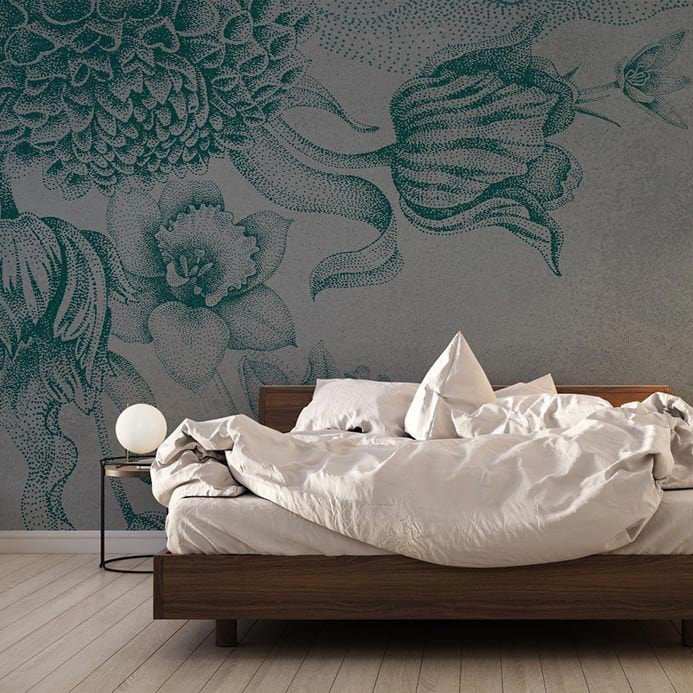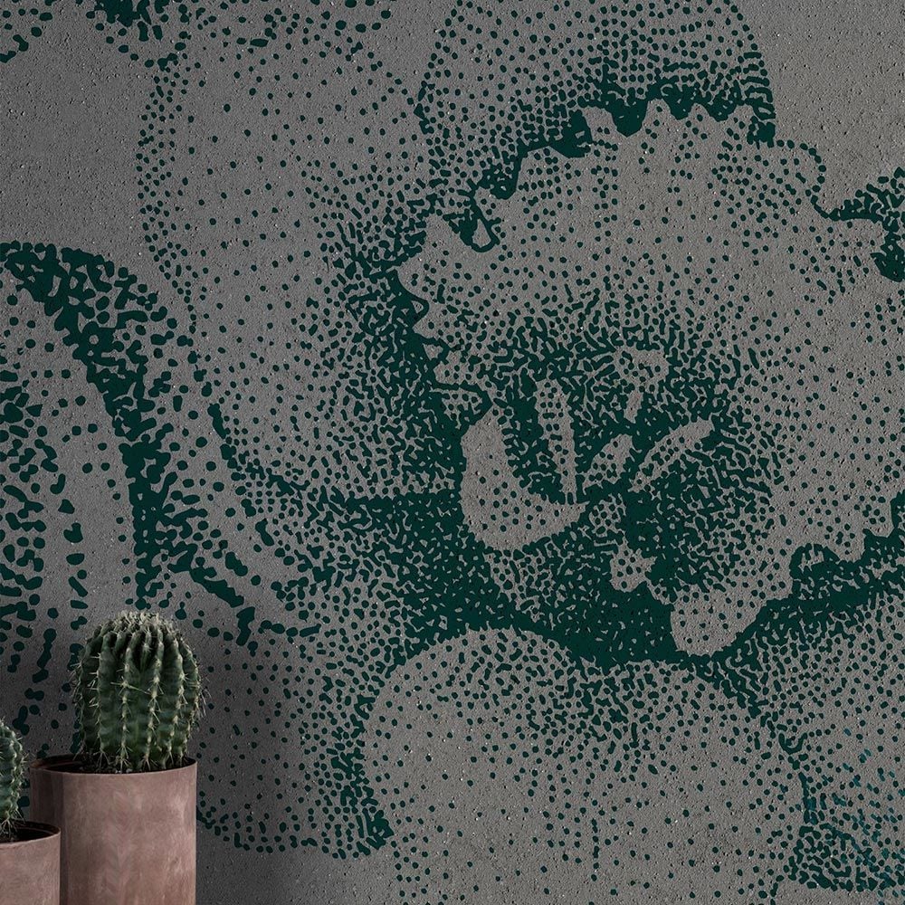 Tasarım Nokta Çalışması Yeşil Çiçekler Duvar Kağıdı