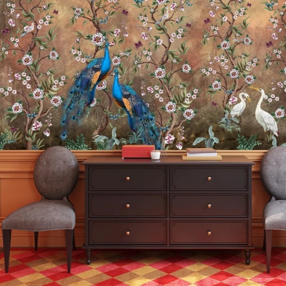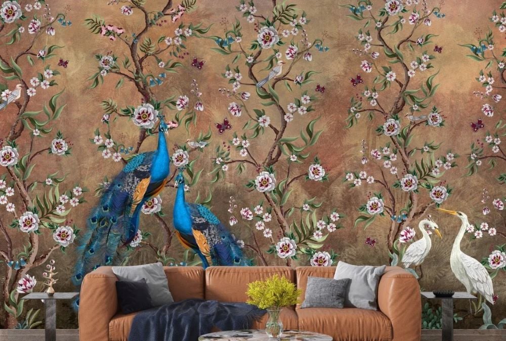Uva Tavuskuşu Çiçekler ve Kuşlar Duvar Kağıdı
