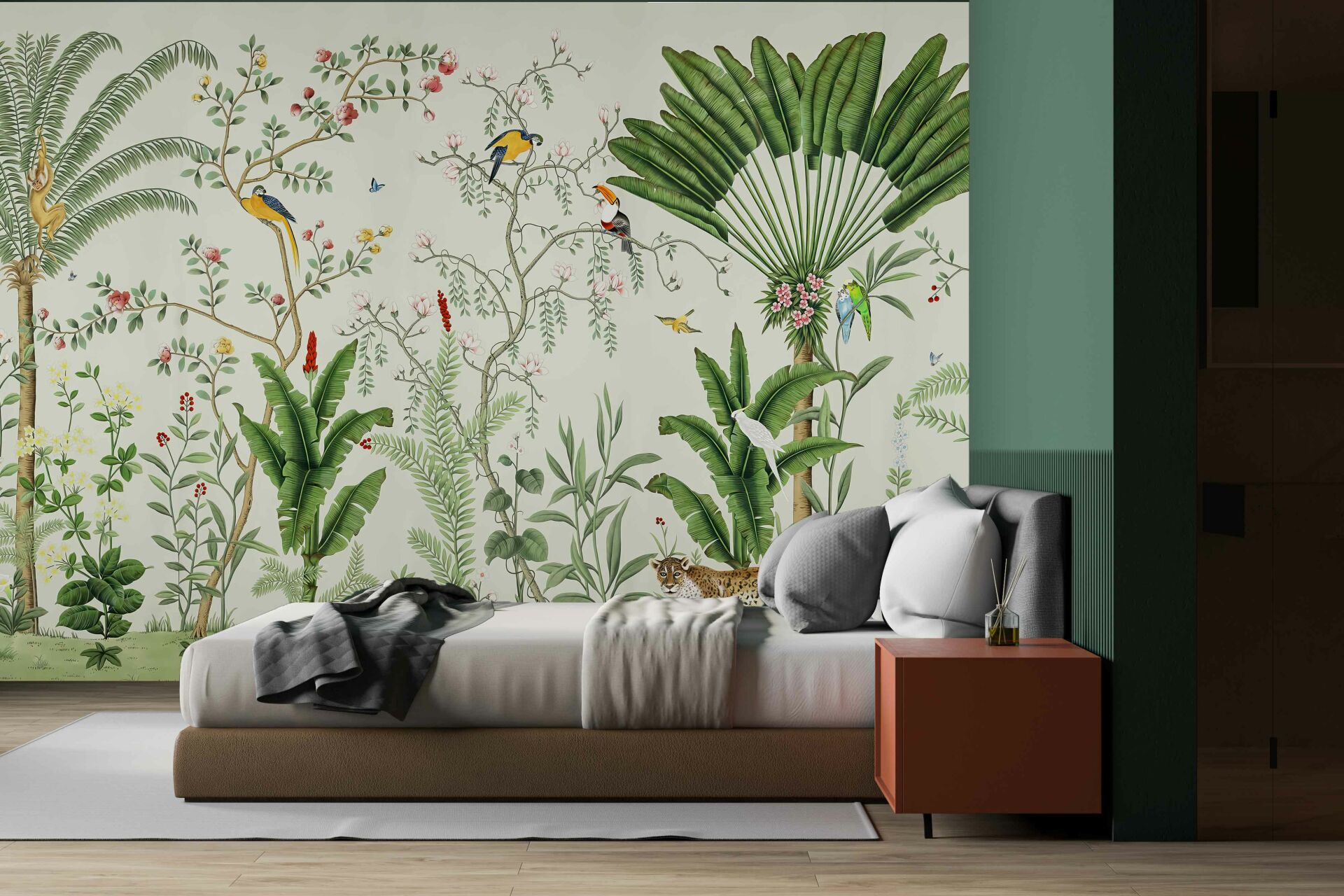 Tropik Ağaçlar Kuşlar Tasarım Duvar Kağıdı