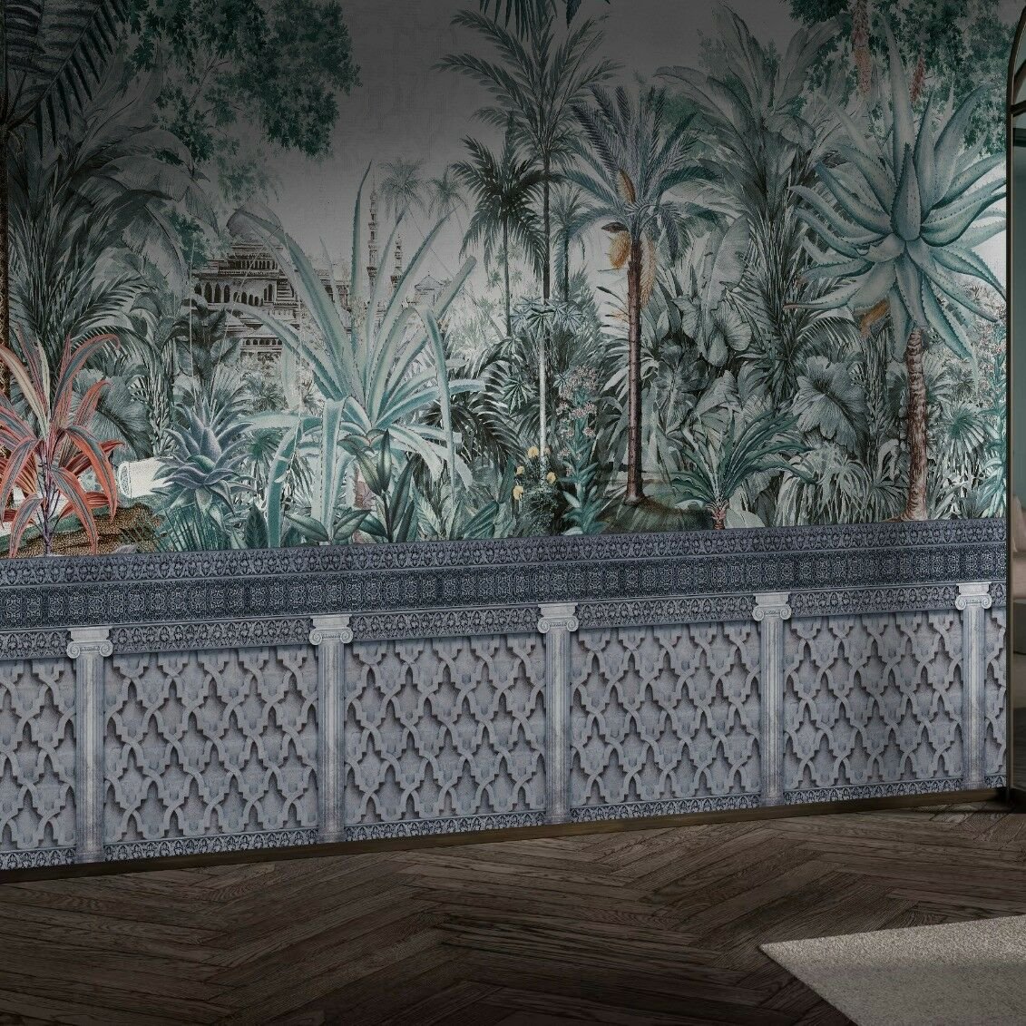 Tropik Ağaçlar Tarihi Bina Tasarım Duvar Kağıdı