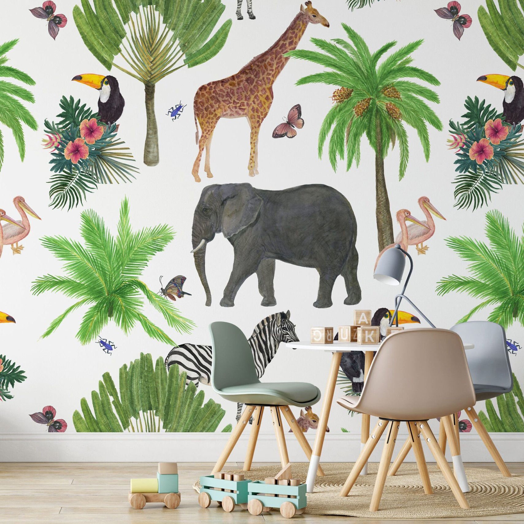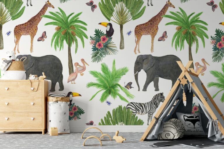 Uva Tropikal Suluboya Efektli Hayvanlar Duvar Kağıdı