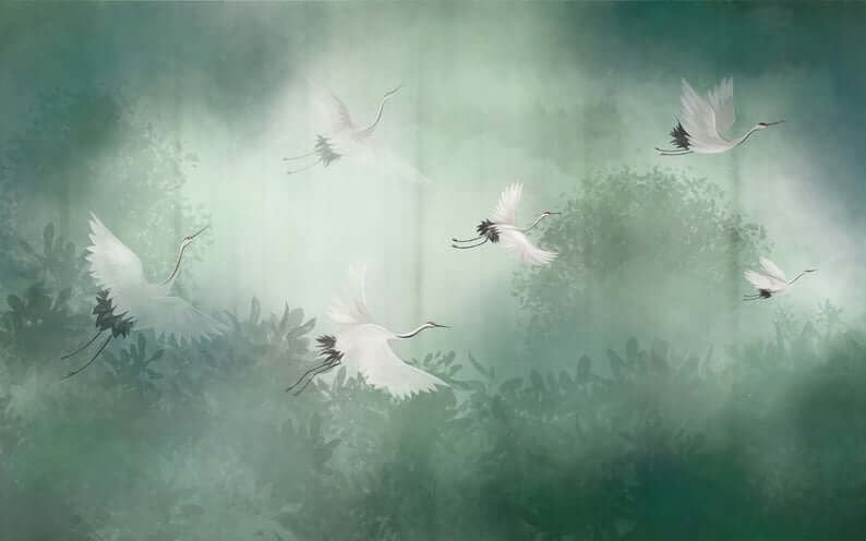 Ömer Dizi Nisa (Merve Dizdar) Yatak Oda Turkuaz Zeminde Turna Kuşları Duvar Kağıdı
