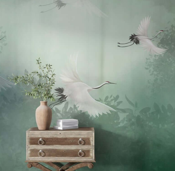 Ömer Dizi Nisa (Merve Dizdar) Yatak Oda Turkuaz Zeminde Turna Kuşları Duvar Kağıdı Özellikleri
