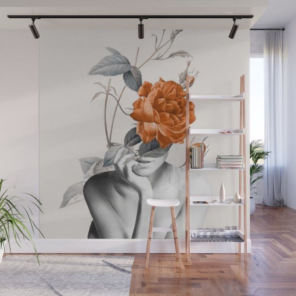 Turuncu Gül Saçlı Kadın Pano Duvar Kağıdı