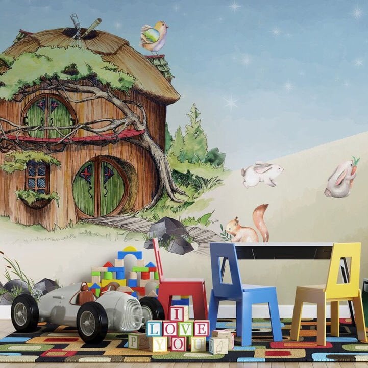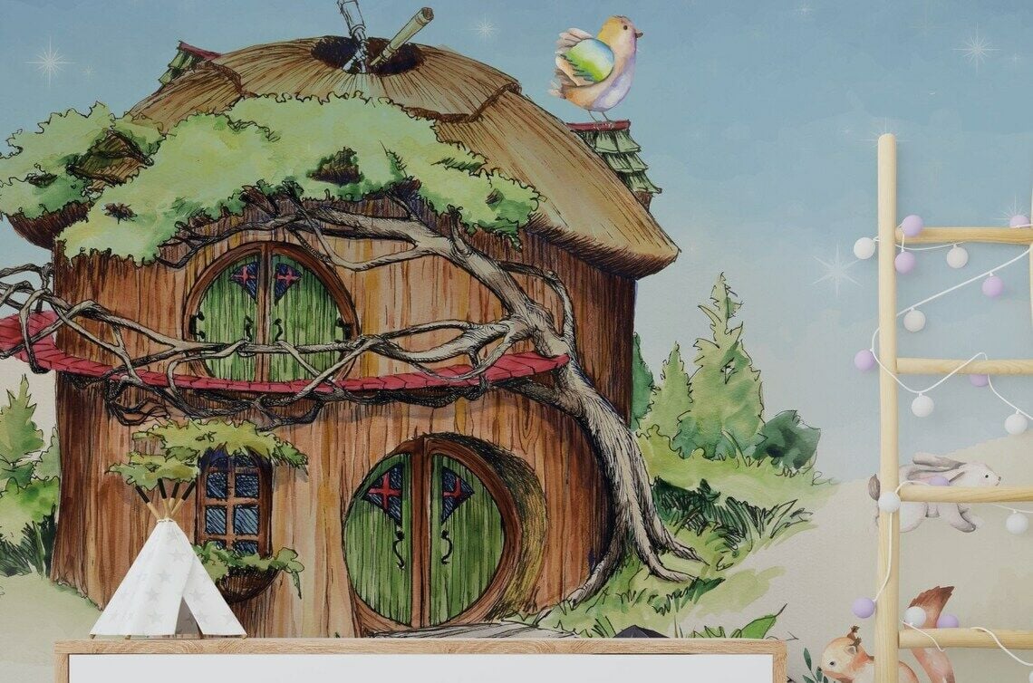 Uva Ağaç Ev Teddy Ayıcık Ailesi Duvar Kağıdı