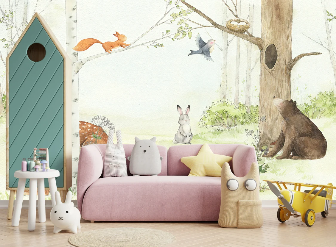 Uva Ceylan Ayıcık Orman Desenli Duvar Kağıdı