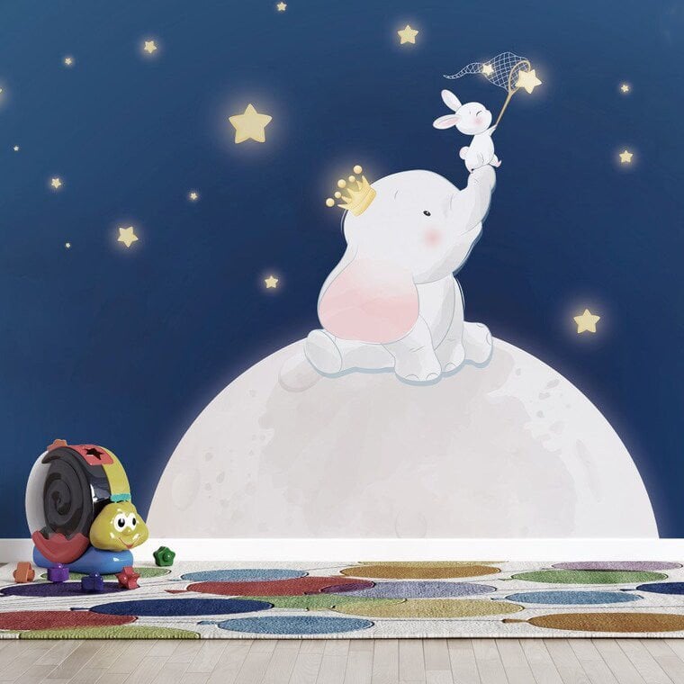 Uva Dolunay Üzerinde Fil Çocuk Duvar Kağıdı