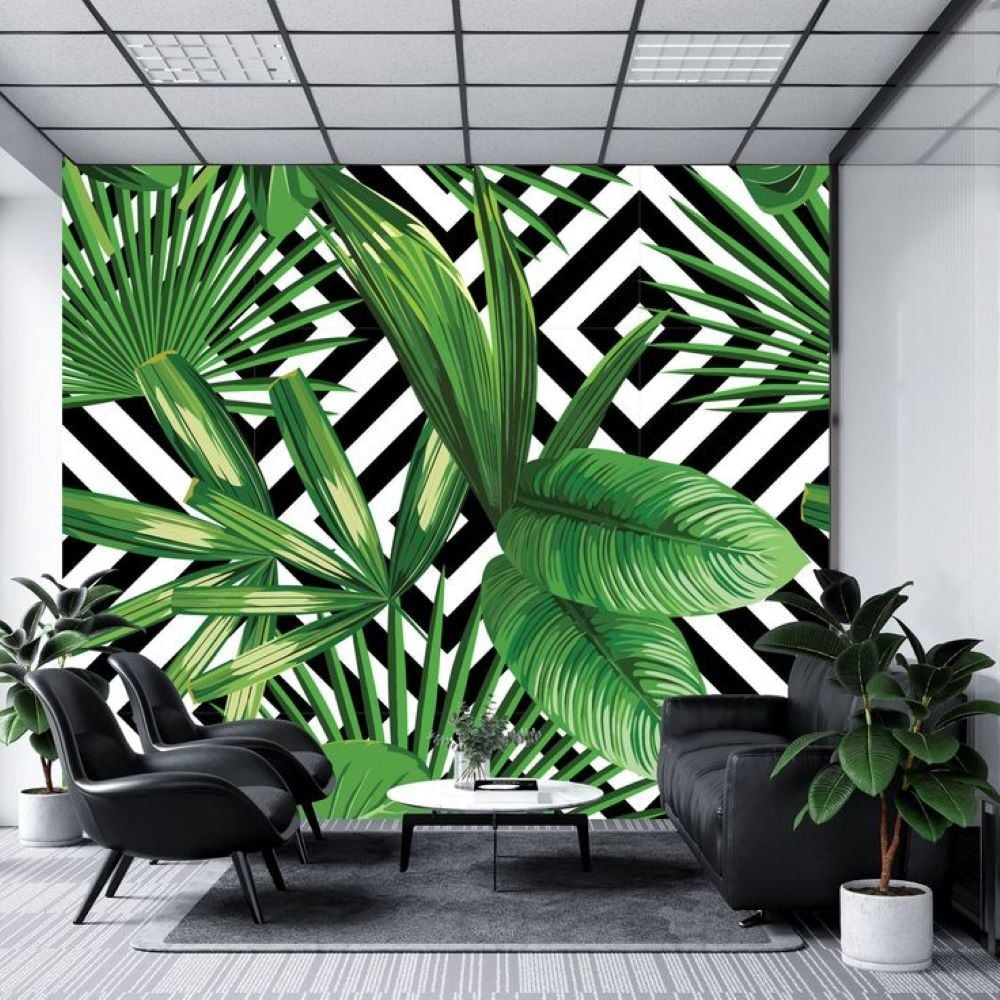 Uva Siyah Beyaz Çizgi Üzeri Yapraklar Duvar Kağıdı