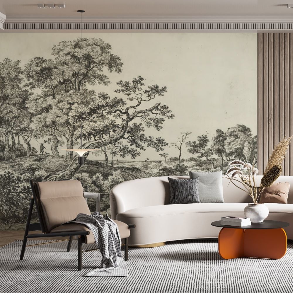Siyah Beyaz Göl Kenarında Orman Duvar Kağıdı