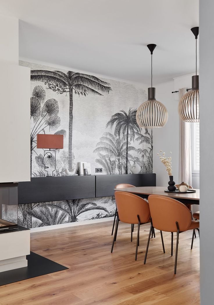 Siyah Beyaz Orman Desen Duvar Kağıdı