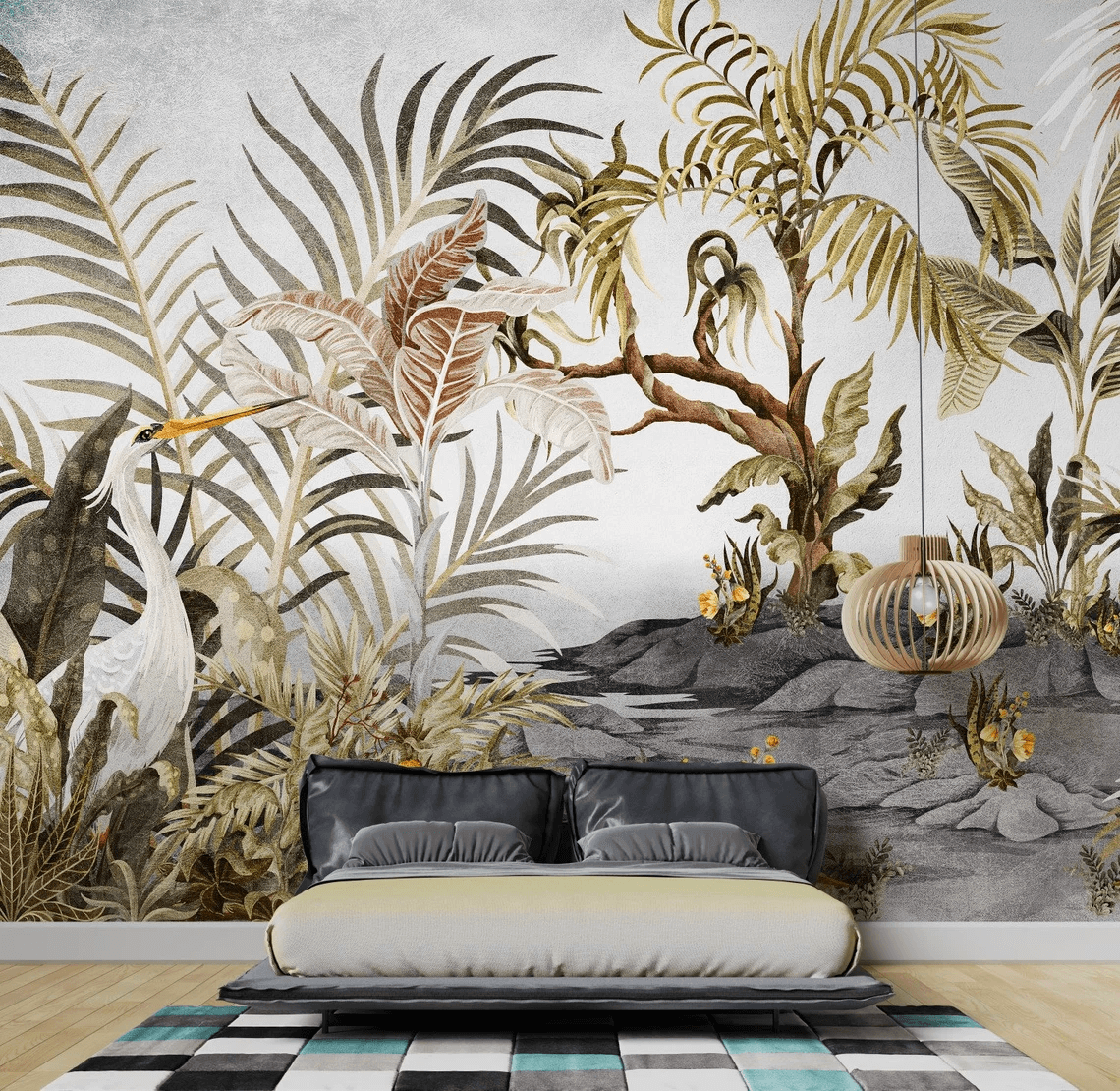 Uva Soft Renkli Orman Turna Kuşu Duvar Kağıdı