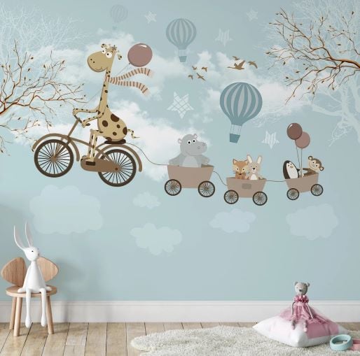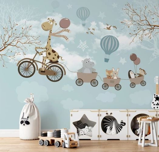 Uva Uçan Bisiklette Sevimli Hayvanlar Duvar Kağıdı