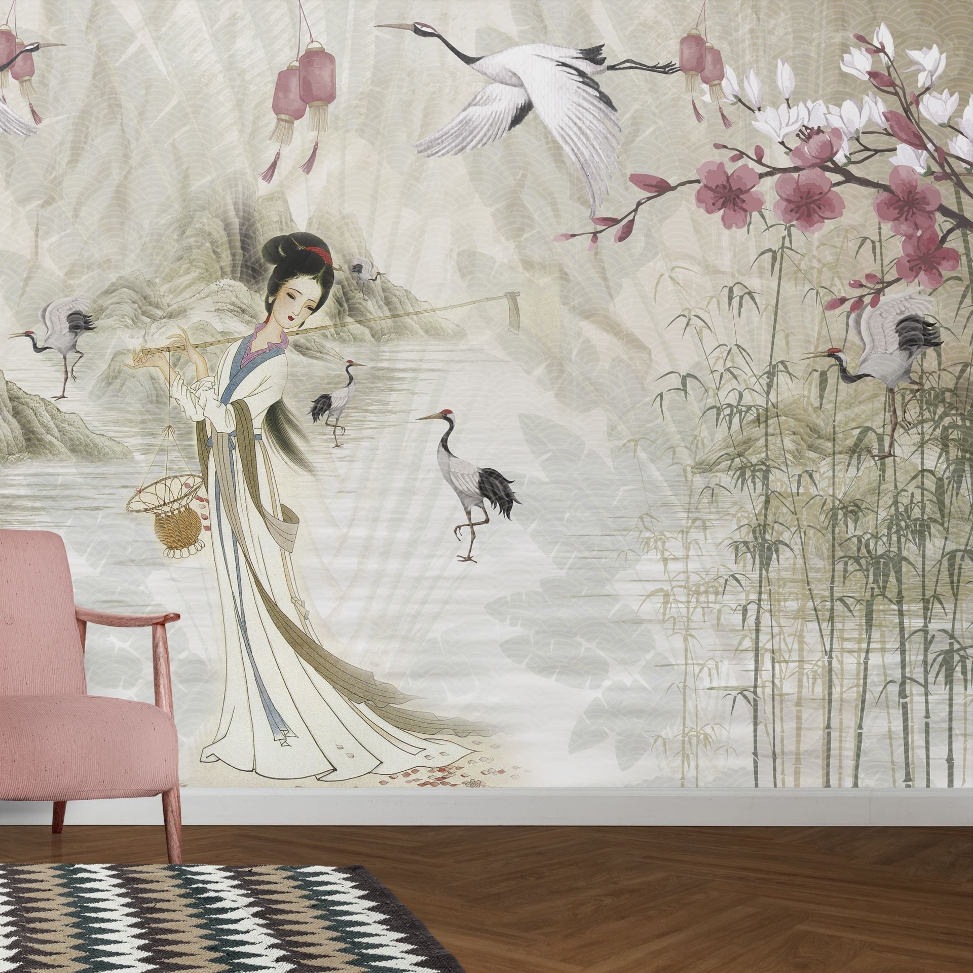 Uzak Doğu Figüratif Desen Duvar Kağıdı
