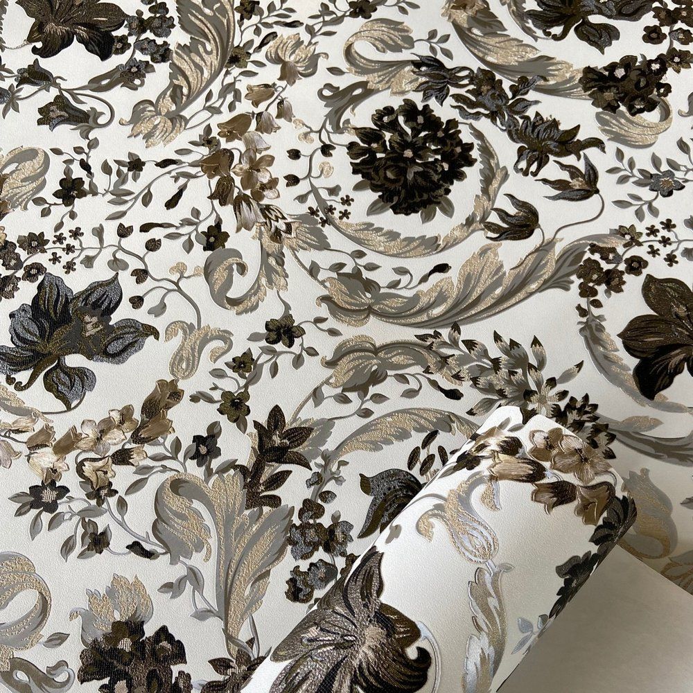Versace 5 Koleksiyonu Barok Desen Kahverengi Duvar Kağıdı