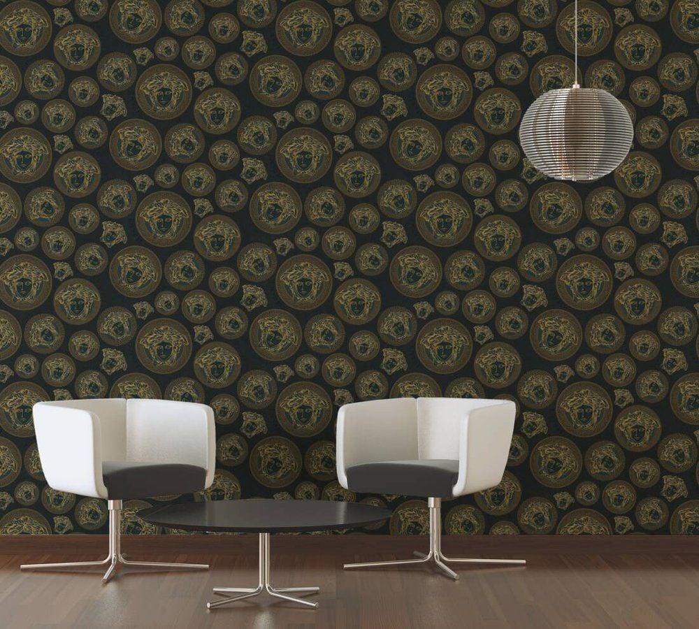 Versace 5 Medusa Head Black & Gold Duvar Kağıd