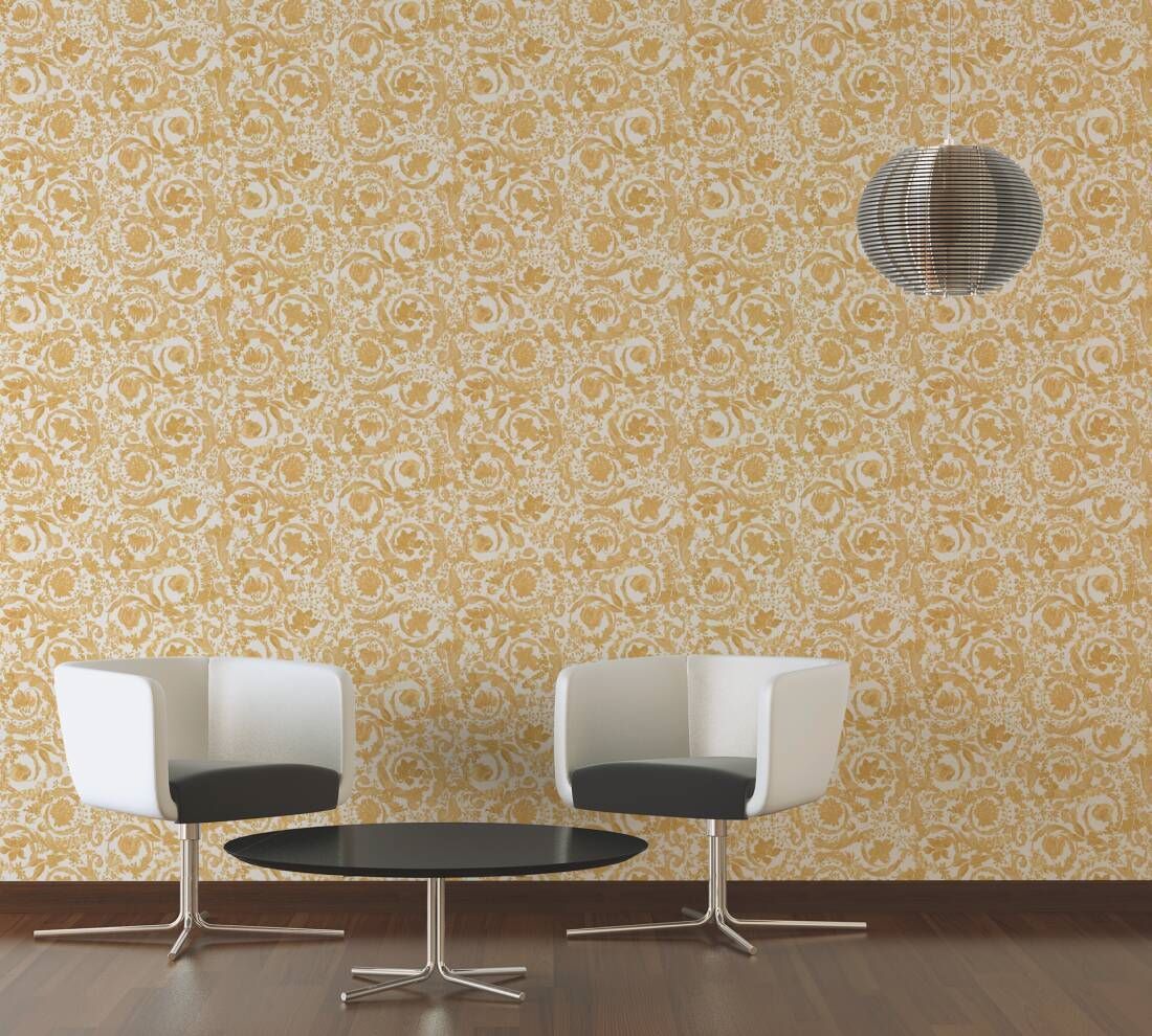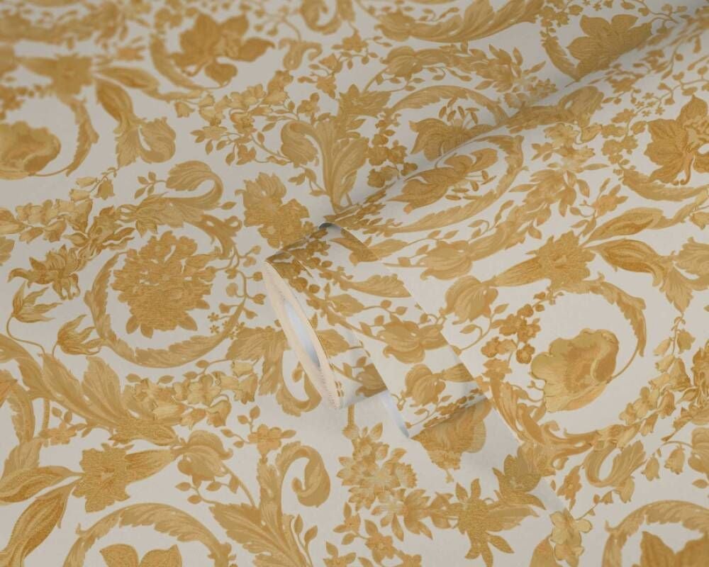 Versace 5 Virtus Gold Çiçekli Duvar Kağıdı