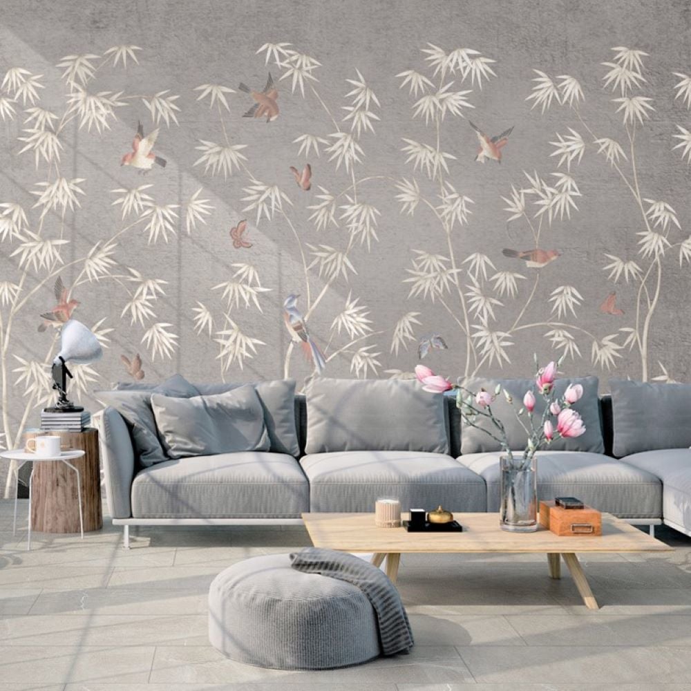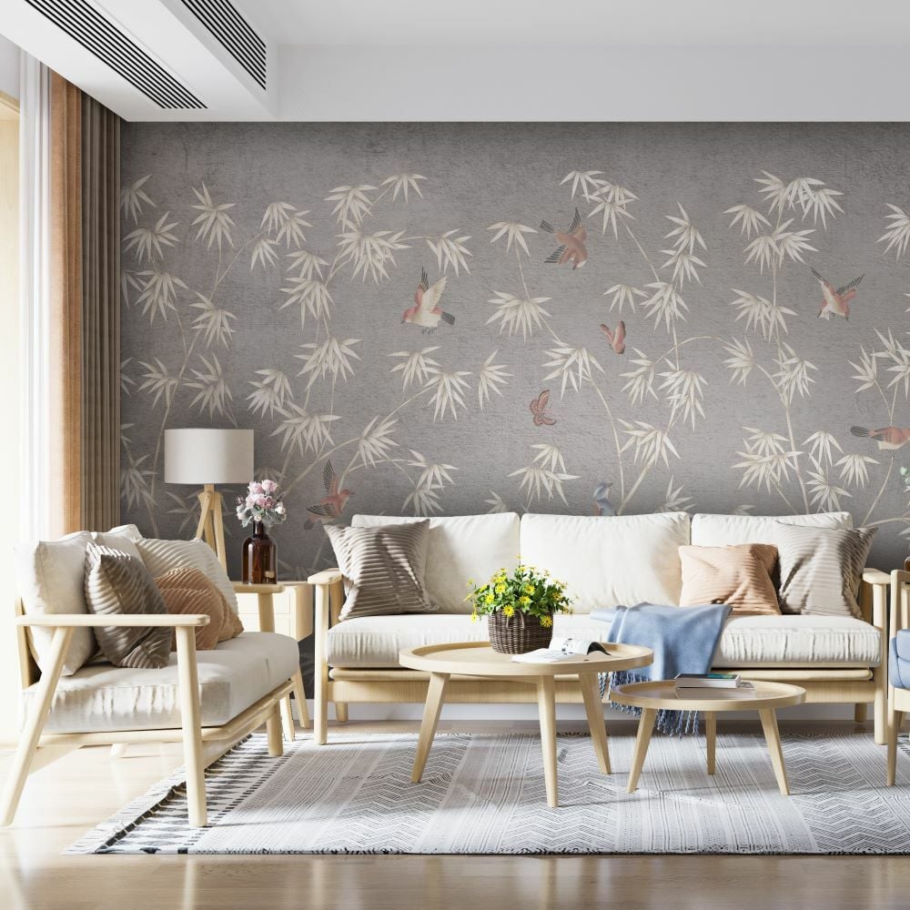 Vizon Zeminde Beyaz Dallar Kuşlar Duvar Kağıdı