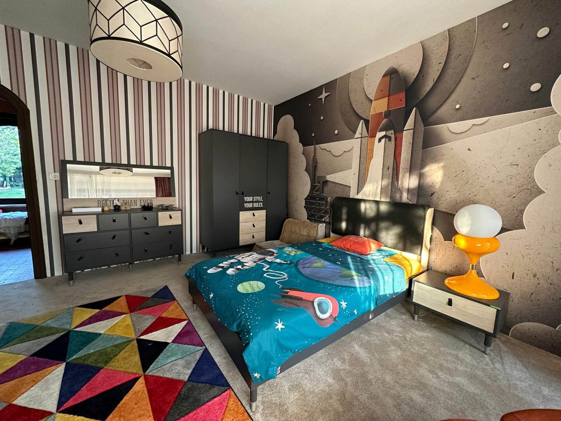 Tv De Biz koleksiyonu içerisinde yer alan bu tasarım, Ya Çok Seversen dizisinde Aydos karakterinin odasından ilham alınarak hazırlanmıştır. Roket figürleriyle çocukların keşfetme duygusunu destekleyen bu özel tasarım, odalara eğlenceli ve ilham verici bir atmosfer kazandırır.