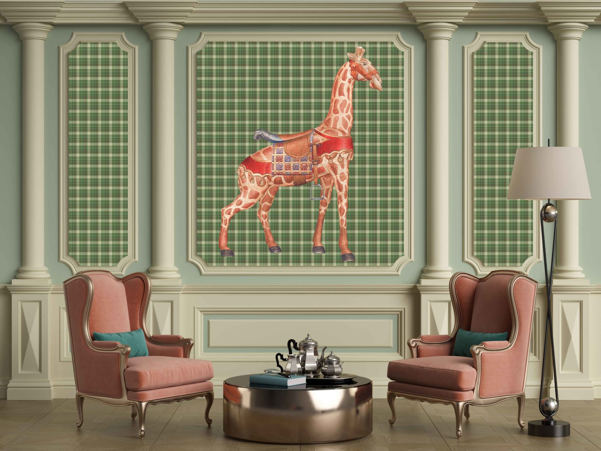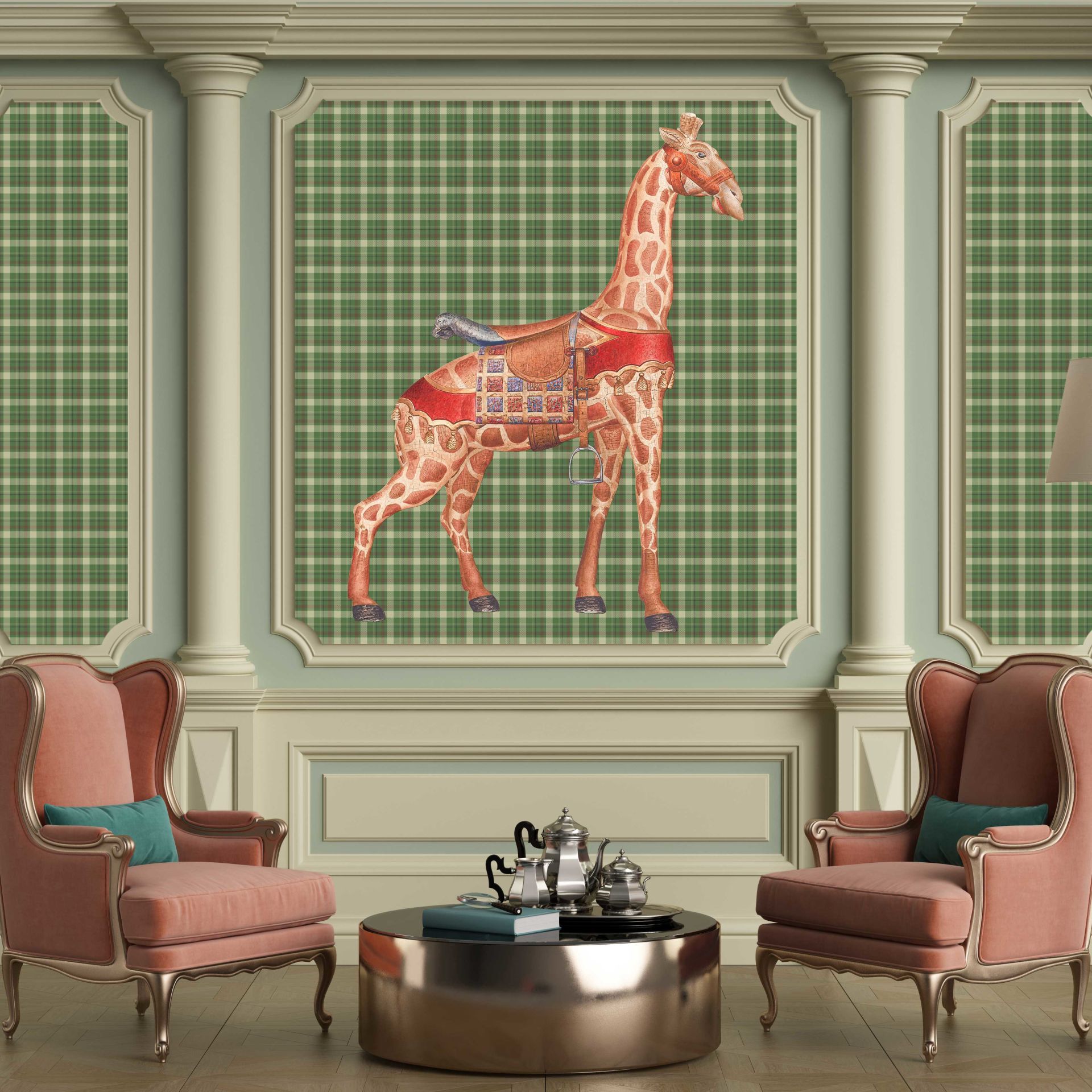 Yeşil Ekose ve Zürafa Duvar Kağıdı