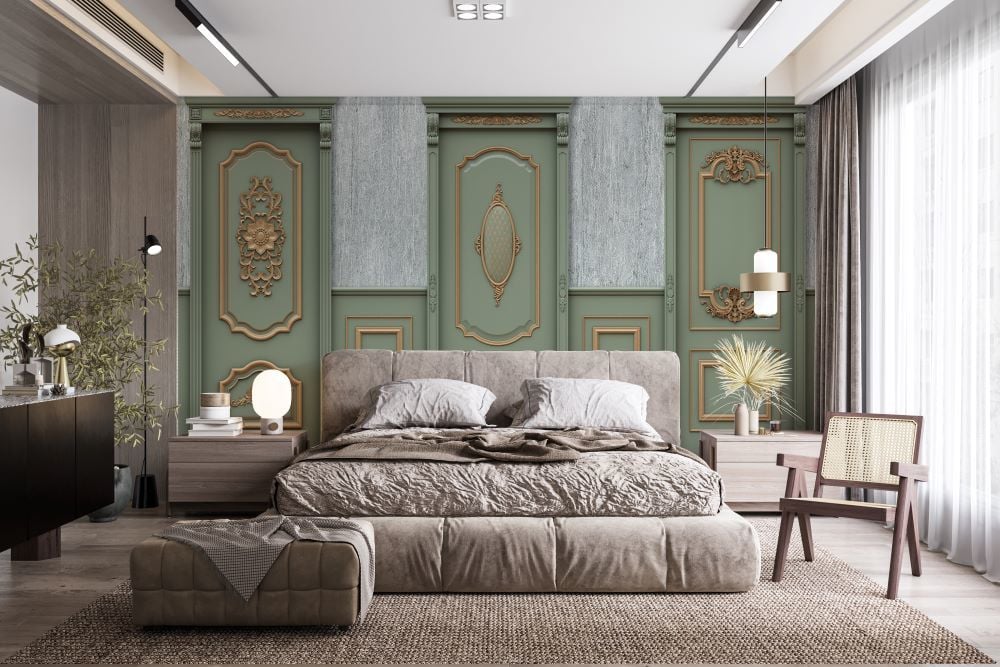 Yeşil Gold İşlemeli Kapılar Duvar Kağıdı