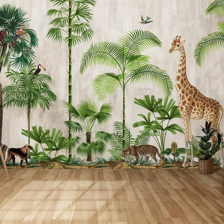 Yeşil Tropik Ağaçlar Zürafa Duvar Kağıdı
