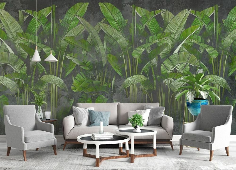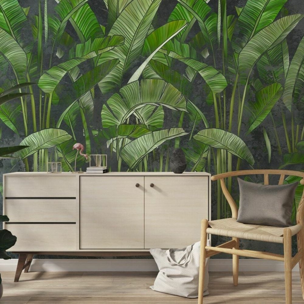 Yeşil Tropik Muz Ve Palmiye Ağaçları Duvar Kağıdı