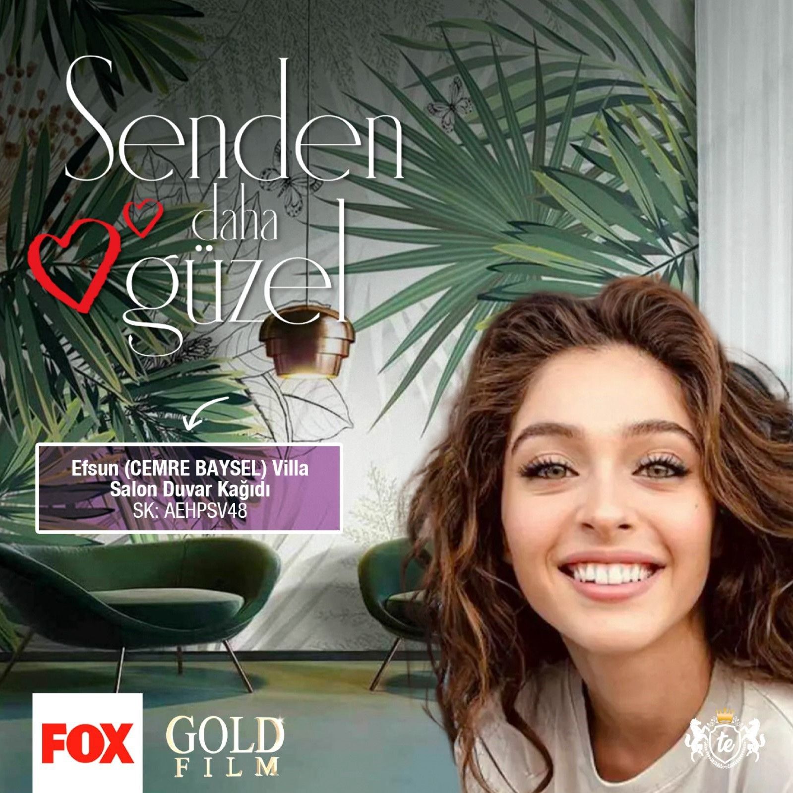 Tv De Biz koleksiyonu içerisinde yer alan Senden Daha Güzel Dizisi Efsun ( CEMRE BAYSEL ) Villa Salon Duvar Kağıdı GOLD FİLM imzalı FOX TV Senden Daha Güzel dizisinin salonu için doğanın güzelliğinden ve renklerinden alınan ilhamla tasarlanmıştır.