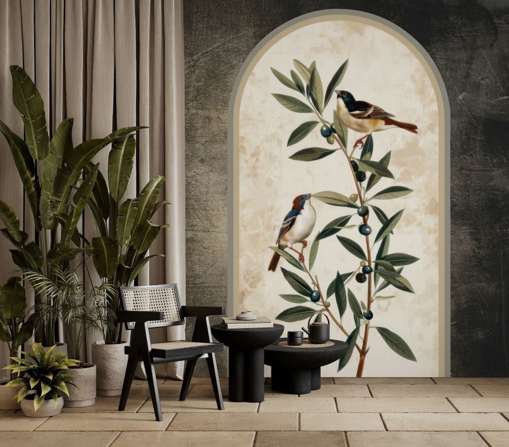 Zeytin Dalı Ve Kuşlar Tasarım Duvar Kağıdı