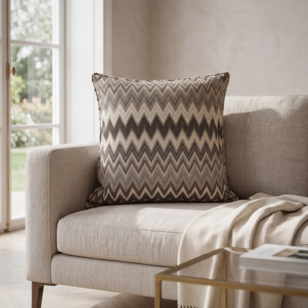 Zigzag desenin enerjik geometrisi ile dokuma kumaşın doğal ve güçlü dokusu birleşerek mekâna modern ve zamansız bir stil kazandırır. Bu özel tasarım kırlent, minimal, modern ve klasik dekorasyon stilleri ile uyum sağlayan estetik bir bütünlük sunar.
